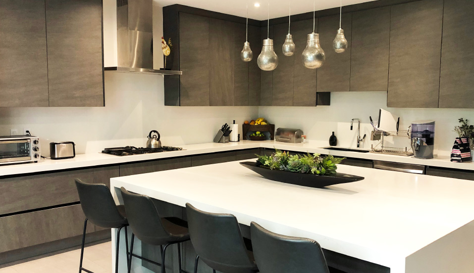 Melamina nacional e importada, FORMICA (HPL), PVC termo formado, Alto Brillo, Poli Acrílico, Cristal y Chapa de Madera.